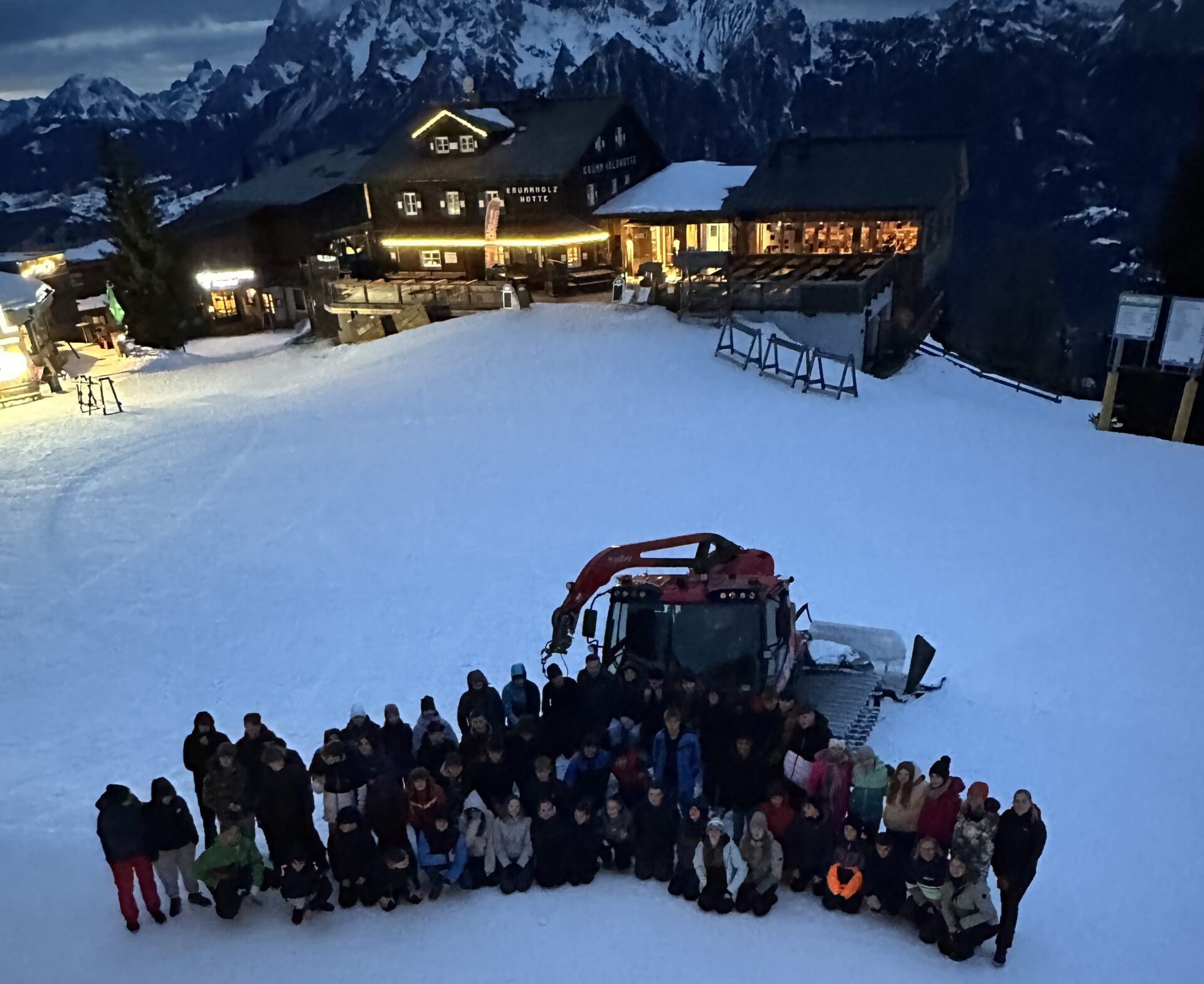 Ein besonderer Programmpunkt abseits der Pisten war die eindrucksvolle Vorstellung einer Pistenraupe durch den Pistenchef der Bergbahnen am Hauser Kaibling. Dabei erhielten die Schülerinnen und Schüler spannende Einblicke in die Technik der Fahrzeuge sowie in die wichtige Arbeit der Pistenpräparierung während der Wintersaison. Anschaulich wurde erklärt, wie viel Erfahrung, Planung und nächtlicher Einsatz nötig sind, um täglich sichere und bestens präparierte Skipisten bereitzustellen.