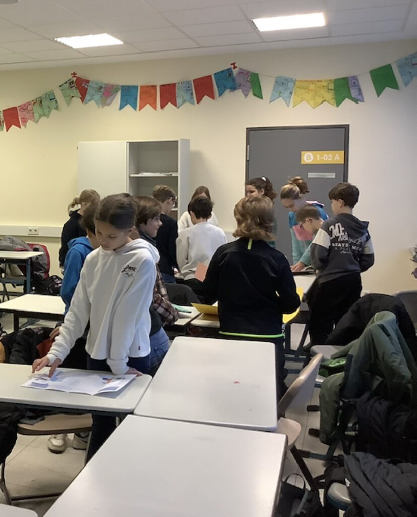 Am Ende der Arbeitsphase gab es dann zum Abschluss einen „gallery walk“. Das Klassenzimmer verwandelte sich in eine Galerie, die erstellten Broschüren, Lapbooks und Poster waren die Exponate. Wie in einer richtigen Galerie wandelten die Schülerinnen und Schüler leise umher, um sich alle Exponate in Ruhe anzuschauen. Oft hörte man ein „Oh“ und „Ah“ als Erstaunen über die geleisteten Meisterwerke. Insgesamt kam der gallery walk bei allen sehr gut an. Leandro zum Beispiel äußert sich wie folgt: „Unseren gallery walk fand ich sehr toll, weil man dadurch auch gesehen hat, was die anderen so gemacht haben.“